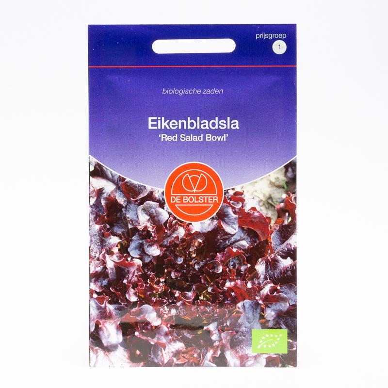 Oakleaf lettuce Red Salad Bowl is a slightly curled loose-leaf lettuce. It is suitable as a cut-and-come-again type. It is very vigorous and decorative. It has tender leaves with a sweet taste. The colder it gets, the redder the leads become. Lettuce has a short growing period and it is therefore important to transplant the plants in a young stadium. Lettuce is at is best taste when you do not fertilize that much. If you would like to eat lettuce each week, you have to sow/plant regularly. You can pick the leaves regularly or harvest the crop at once.