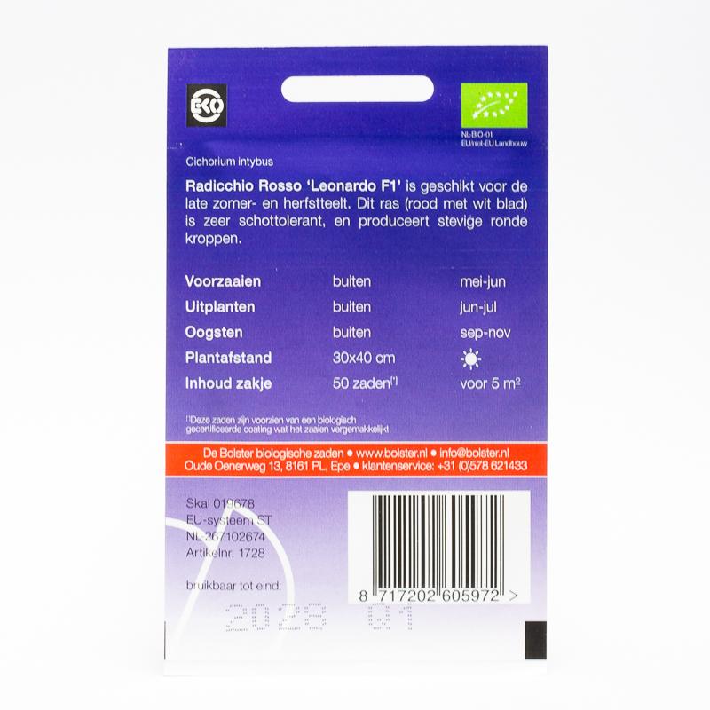 Radicchio Rosso 'Leonardo F1' is suitable for late summer and autumn cultivation. This variety (red and white leaves) is very resistant to bolting and produces firm round heads.