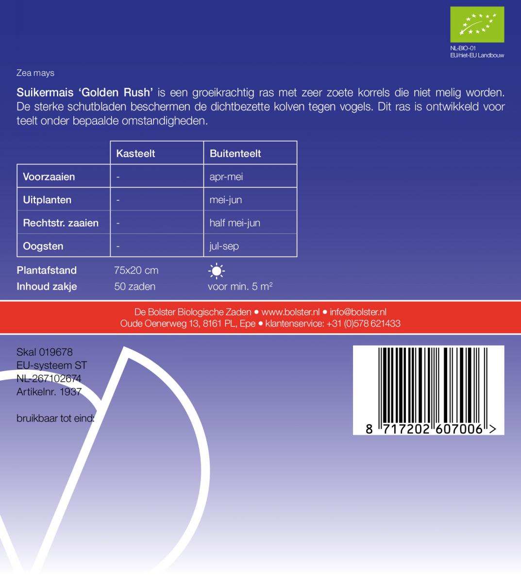 Please note: in order to preserve the characteristic quality and sweet flavour of 'Golden Rush', it is important to prevent cross-pollination with other corn varieties.