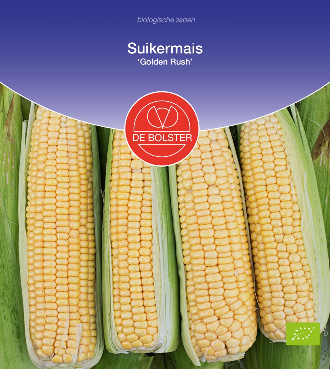 The seedlings grow into strong plants quickly in warm weather. For good (wind) pollination, plant them in groups. If well-fertilised, the plants will develop beautifully cylindrical cobs, densely packed to the top with golden yellow, tasty kernels. These are well-protected by the many strong bracts that close around the entire cob to the tip, which prevents bird damage.